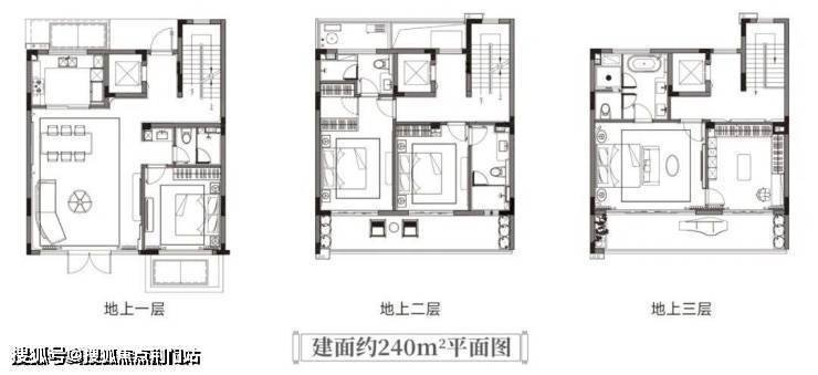 建面约240㎡的中间套,同样是大四房格局,二三楼都有宽约8.9米的跑道式阳台,四季美景循环播放。