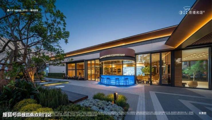 不同于多数门头生硬的隔离内外,崇璟和颂府引入香樟树、水景、引力橱窗、座椅,甚至还有一间咖啡馆。