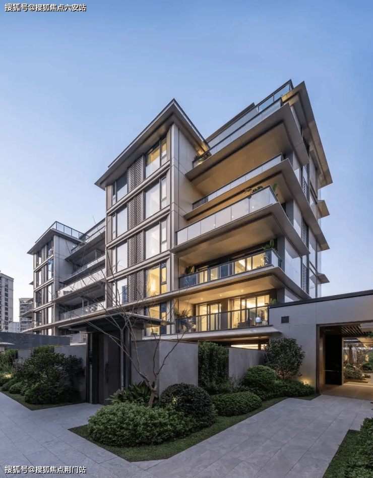 星润府宽近80米的主入口,以普拉达绿奢石为底座,镶嵌千年罗汉松,形成威仪棣棣的迎宾阵列。让业主拂去尘嚣,感受礼宾般的归家仪式感。项目采用暖银色铝板+三玻两腔玻璃,香槟金型材勾勒,弱化刚硬感,营造“隐奢”气质,视觉比一般的建筑更有质感。