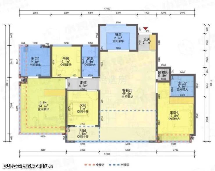 2)四开间朝南,双套房设计,主卧空间再升级
