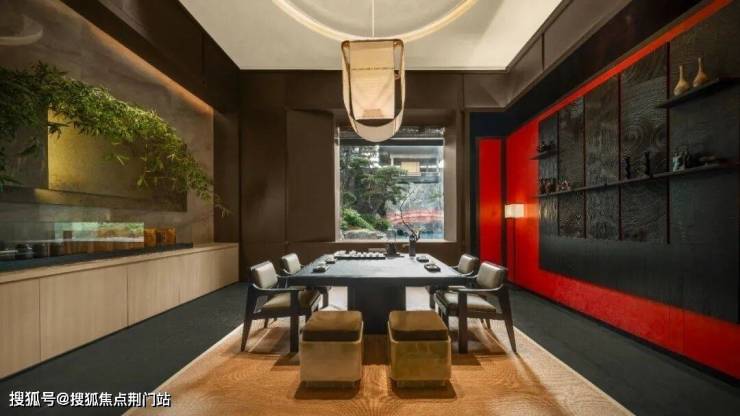 在四面大面铝板+大面玻璃基础上,西源赋叠墅的立面注入了东方美学,中间飞檐翘角、花窗阑干元素,屋顶官帽挑檐,起伏宛转,气场全开。