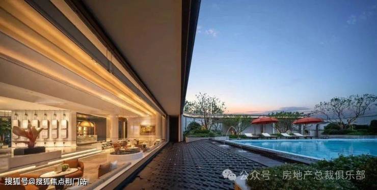 深入后场,邂逅自然之美与艺术之韵的都市宁静之境。中央漩光泳池,底部海棠花影寓意“团圆美满”,美不胜收。两侧乌桕树倩影婆娑,象征“长长久久”。铁冬青环绕四周,传递“健康长寿”的美好祝愿。超过7米的泳池社交吧台、下沉式围坐区,以及超过16米的跳泉叠瀑等元素,共同营造出度假风格的社交领地。