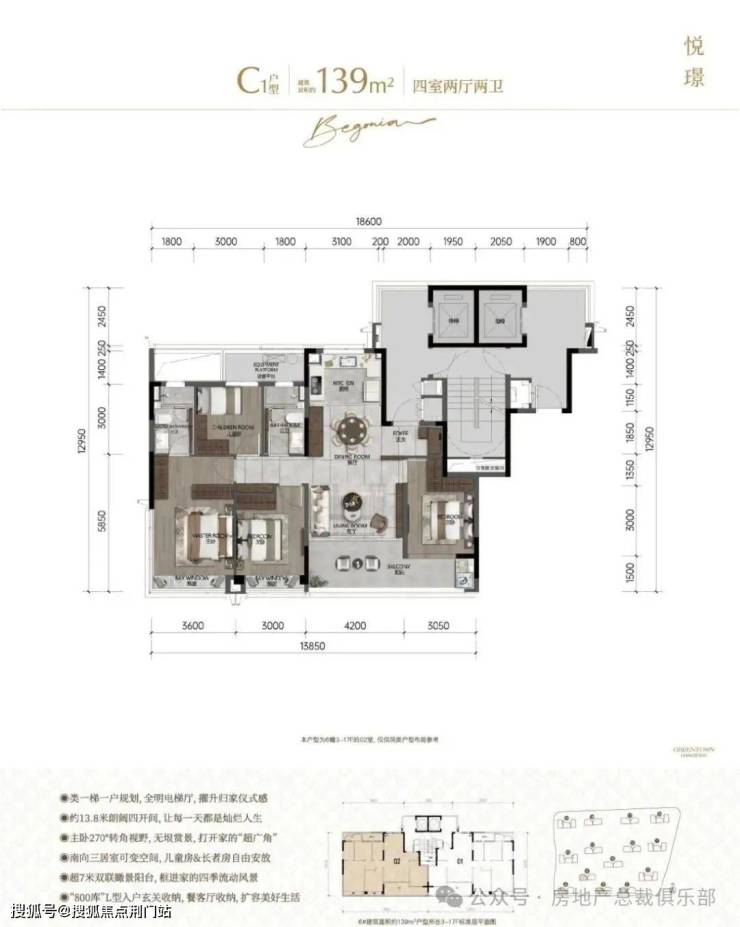 139㎡C3户型·四房两厅两卫,尊享一梯一户私密归家体验,匠心独运,入门即享光之盛宴,南北畅通风韵;四开间均朝南,南向面宽达13.8米,空间布局严谨考究,方正格局,配备充足收纳区域;主卧配备270度全景视角,尽享无限风光。