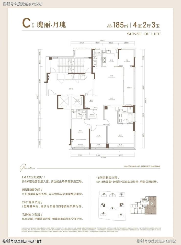 185㎡ 4室2厅3卫 LDKB空间近50㎡,7米落地窗