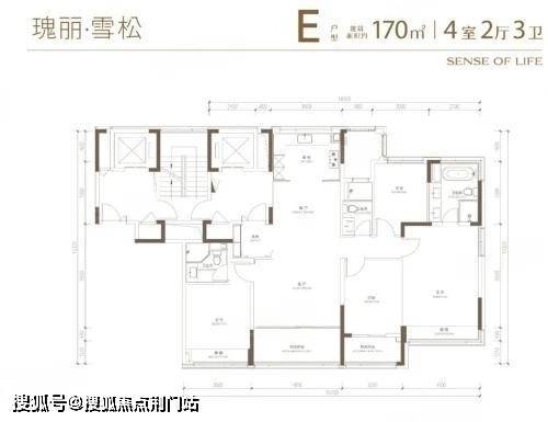 170㎡ 4室2厅3卫 “四叶草”格局,卧室分布四角互不干扰