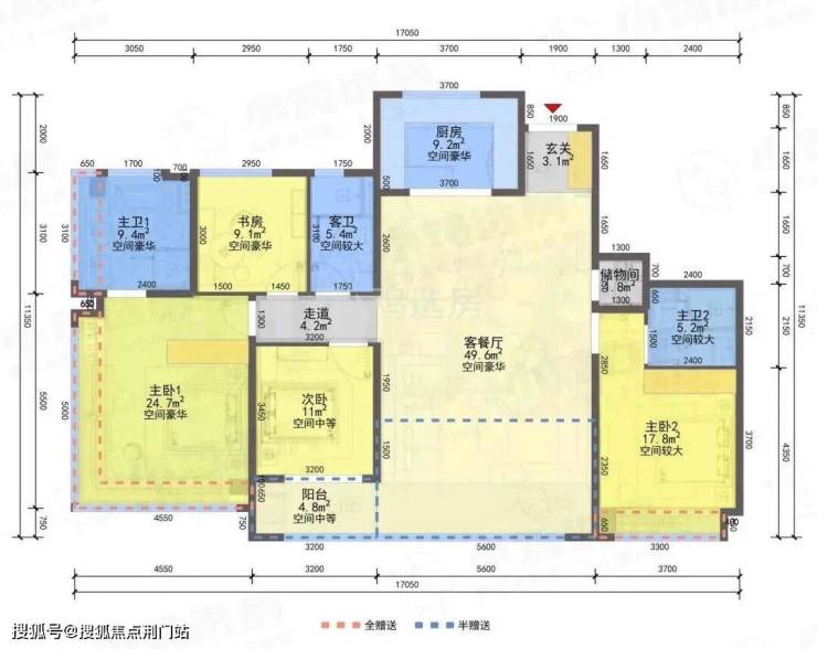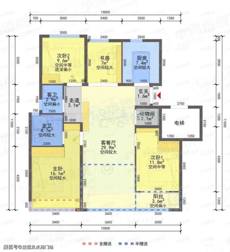 3.独立电梯厅+玄关+家政间+储物间+南向生活阳台+三卫配置,功能无死角