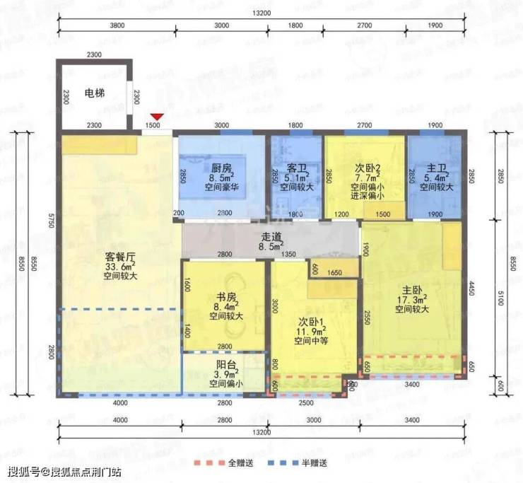 1)户型方正,四开间朝南,南向开间约13.2米,采光充足