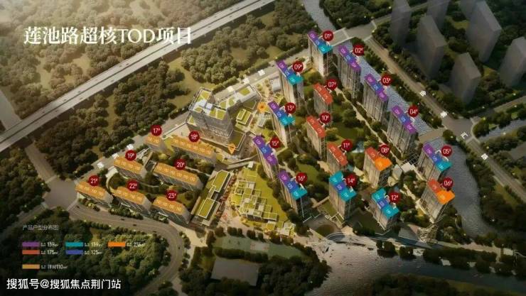 南区由7幢8-10层低密洋房组成,整体成行列式布局,仅110方一个独苗户型。商业部分由1幢23层商务楼+约600米滨水森林商业街区组成,地铁4号线莲池路站在南区和北区之间。