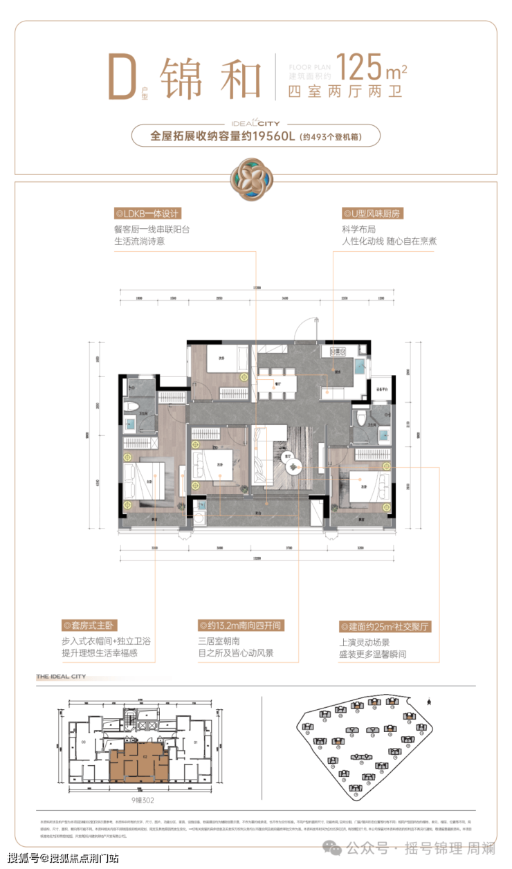 不止单价,就连总价也是低门槛,因为它的主力户型是建筑面积约96㎡-169㎡,其中建面约100㎡上下的小户型,占比达到了50%,总价200多万就够得上。