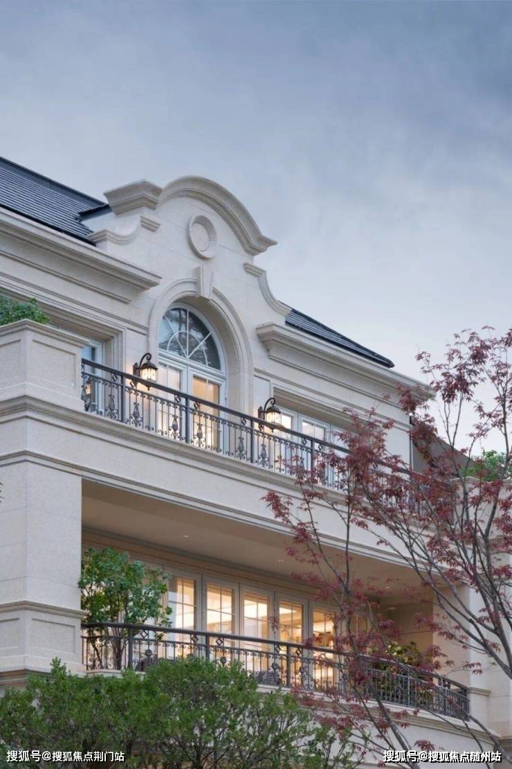 而做了超长面宽和大面积落地窗之后,你不会觉得这样的法式合院是违和的,它依旧是经典的法式建筑。因为绿城仍然严格遵循了法式建筑的规制,大到外立面用了全干挂黄金沙石材,小到栏杆、窗格、艺术装饰、宝瓶柱等等,都很经典。