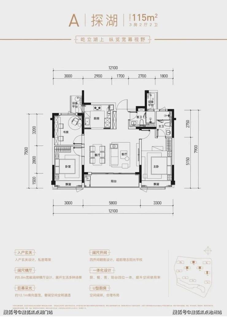 譬如,建面约115方三房两厅两卫,以三开间朝南搭配LDKB一体化阔厅,通过约27方餐客厅与观景阳台无缝串联,尺度彰显气势之外,与公区融合后,衍生出更多社交价值。
