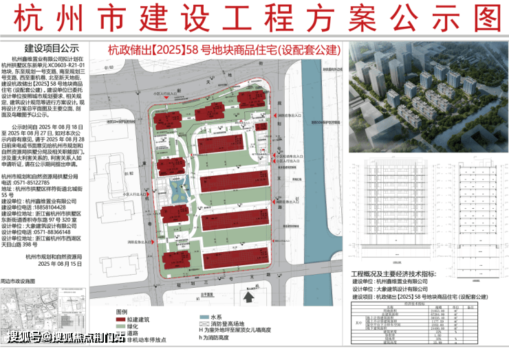 目前新出让的博策地块暂无更多消息,本文先带大家来了解西房项目。项目规划为高低配,目前已定公示案名:西房映杭武宸府