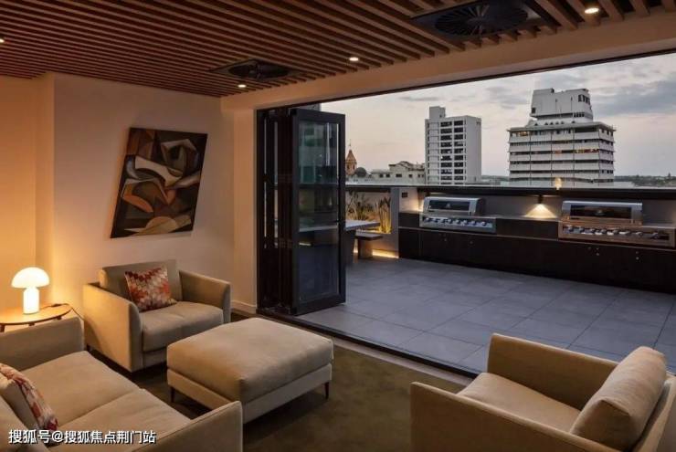 走上三层, 就是70多㎡的环幕式露台,在自家的空中花园里开一席夜宴吧,雪白桌布与锃亮刀叉铺开,豪宅巨邸氛围拉满。
