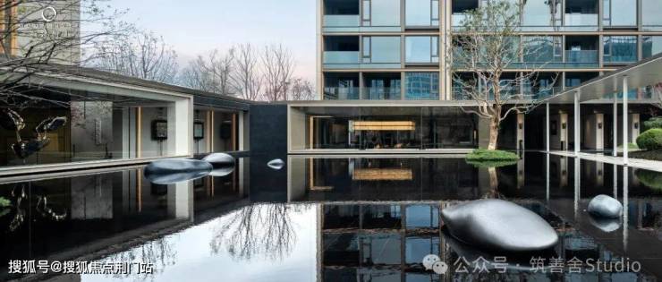 前面序厅中水上树阵的核心理念在于对称与“悬浮之美”,而步入园区中心,这座水院的焦点则是“环抱之韵”,这一设计创新,开创了前所未有的空间体验。