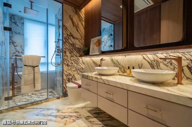 简单环视餐客厅、卫生间,不同石材点缀,不仅材质更耐用,也让空间更具视觉冲击力,整体优雅、品质感呼之欲出。