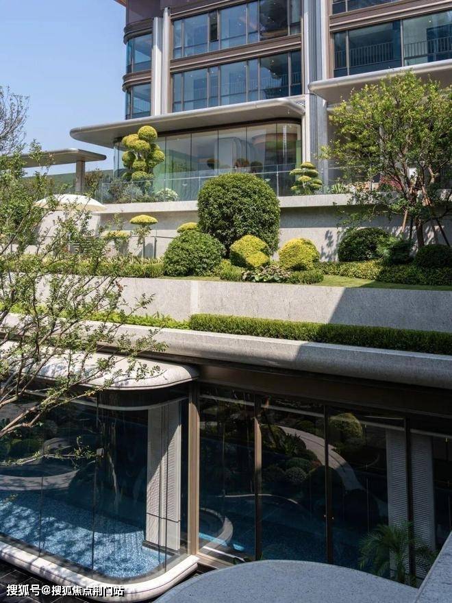 穿过大门,映入眼帘的是中轴下沉式庭院,咏舟府以“漂浮”为设计灵感,精心构筑了立体化、多层次的花园景观。瀑布、水景、植被与观景平台巧妙融合,打造出层次丰富的立体景观空间。未来感与艺术性在此交汇,营造出悬浮于自然之上的生活场景,成为新中心的标志性名片。