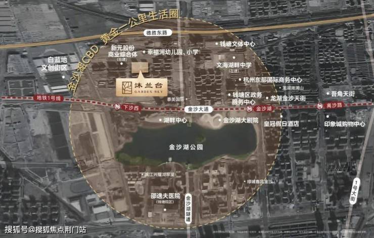 往南还有1号线下沙西站、邵逸夫医院、金沙天街、文体中心……这是真正的把密集的城市资源,“踩”在了脚下。