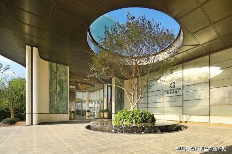 园林景观由蓝颂景观设计院操刀,借西侧钱塘江景引水入园,山景与水景的巧妙交融,形成一幅流动的山水长卷。泳池休闲综合体、活力环绕健身跑道、童话剧场与春知学堂的植入,让“酒店式奢华美学”与“游园之趣”并存。而约7米高的主入口,贝金米黄石材与古铜色金属板的冷暖碰撞,圆形镂空穹顶下的紫薇树,更将“光明与希望”的意境渲染至极致。