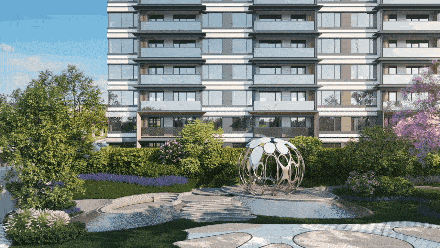 排屋建筑的二层部分是采用大面积落地窗形式和挑台露台形式,洋房则运用了大量横向贯通的建筑元素和设计手法,如横向玻璃带,更好的体现了多层建筑的舒展性和延伸性,进一步削弱了建筑高度对人带来的压迫感。两个产品都注重当代人审美观,又关注到日常生活对阳光日照的需求。