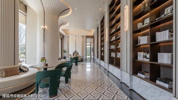从白玉水晶会客厅的超高玻璃看出去,可见庭院的“每一米”都被不同的景色铺满,镜面般的水系、圆润可爱的灌木丛、昂扬向上的花木以及形似瀑布的金属珠帘等共同组成了灵动的立体图景,宛如置身新加坡parkroyal公园的皇家酒店。