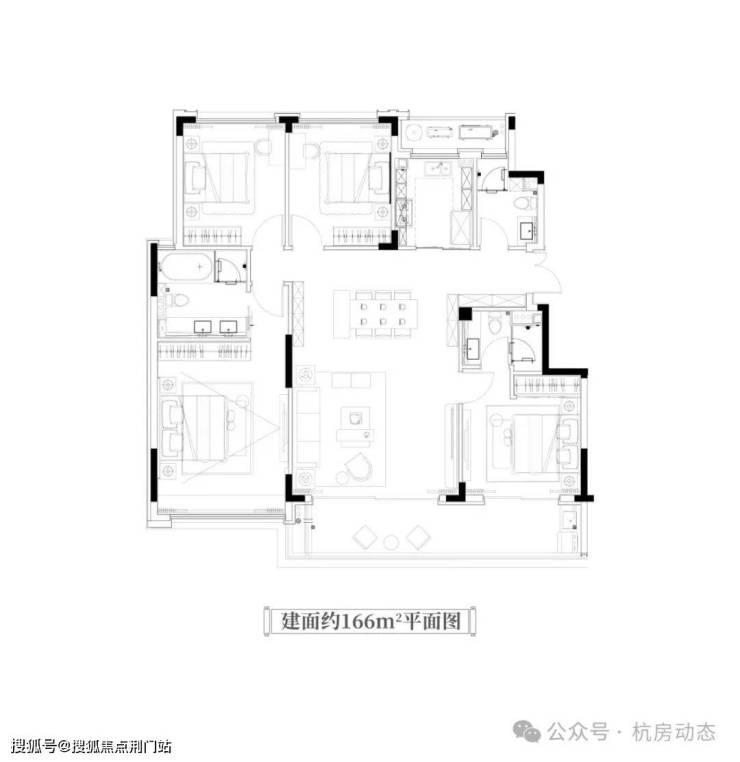 166方户型图,含赠送95%得房率