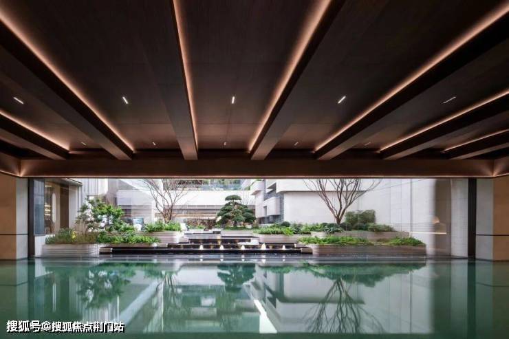 值得一提的是,有别于传统会所泳池无法与外界联通,翠隐江粼的恒温泳池沿着下沉式庭院这一侧打造巨型可移动式玻璃门