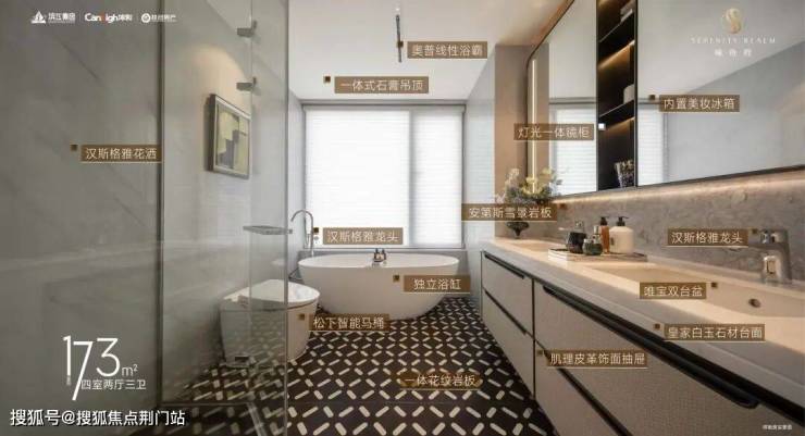比如,日本东芝的中央空调,新风系统,德国博世的厨房六件套(含两台嵌入式冰箱),以及主次卫松下双智能坐便器,汉斯格雅五金,唯宝台盆等,而且厨房单独配置了东芝空调。