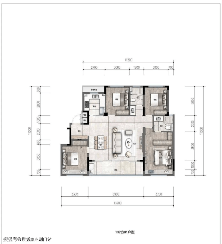 经典的四叶草格局。这种户型的优势是“消灭过道”,把面积极致利用。另外,因为4个功能间居于四角,且南北通透,对私密性的维护也和当下社会注重隐私的需求不谋而合。