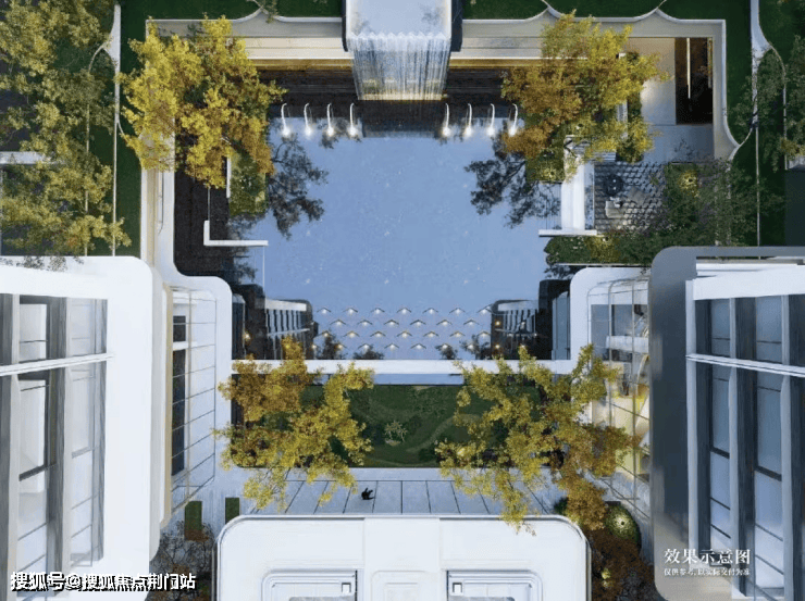 再看约1200方下沉庭院,叠水成瀑,区别于市面上大部分楼盘的“坑洞感”,形成上下两个平行空间的双层滨水度假系统,一看就很赞。