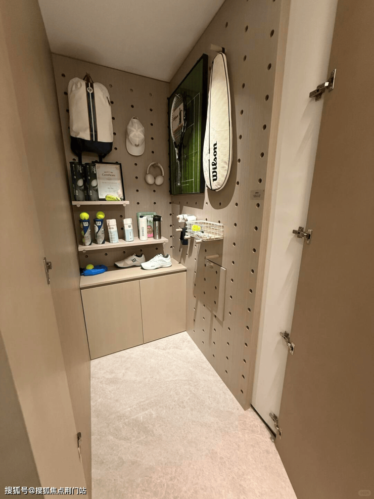 卫生间整体化岩板,一整面镜柜(内置美妆冰箱),电热毛巾架,智能马桶,旁边还有手机架&纸巾架、马桶冲洗喷头,淋浴房里壁龛、内置式顶喷、地漏阻挡条可开可合(防止堵塞)……日常生活的细节都考虑得很周全。