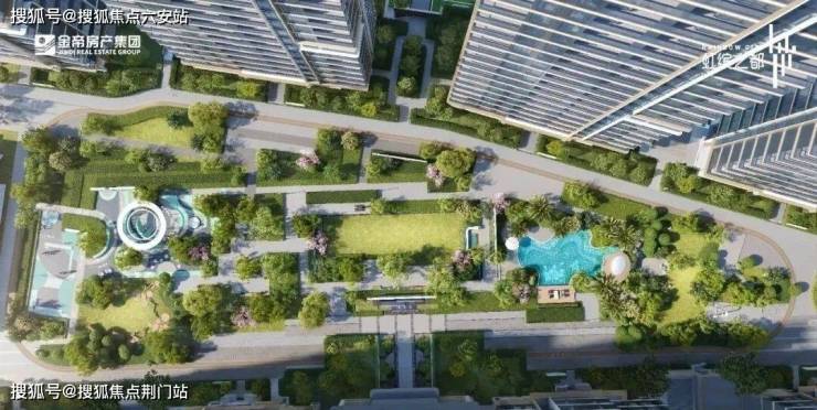项目1期8栋住宅建筑呈南北排布,围合约13000方景观中庭。从鸟瞰图来看,虹缤之都9#楼既与银湖公园紧邻,向湖景公园敞开怀抱,向南又俯小区中央园景。自然形成以“园”为庭,以“湖”为院的“前庭后院”双乐园体验。