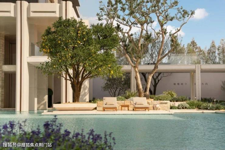头顶是硕果累累的果树,身边是宁静湛蓝的水面,微风拂过,波光粼粼,坐在树下仿佛心灵都得到了洗涤。它不在遥远的「地中海度假区」,而在杭州非常成熟的城区,同协路上的中天海威·璟逸。
