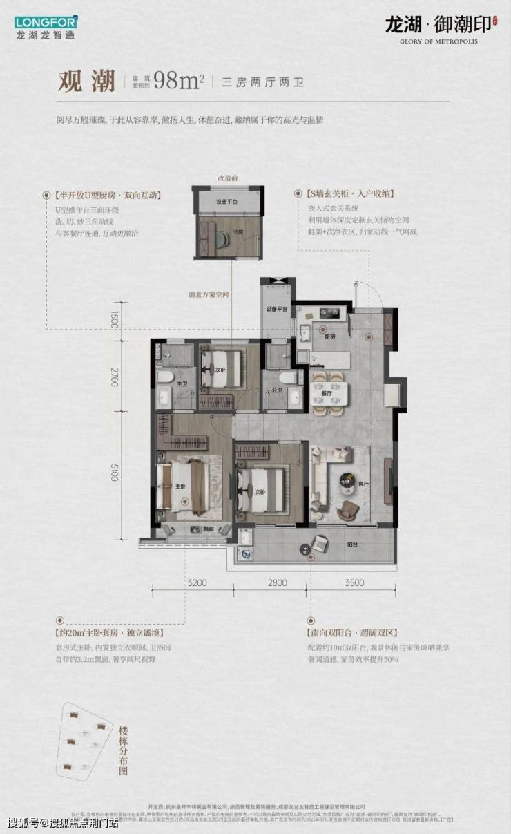 要知道,目前的杭州楼市新盘户型越做越大,钱江世纪城更是200方起步,御潮印建面约98方户型填补了市场空缺,以百万级的低门槛,享受真3房,显得尤为珍贵。