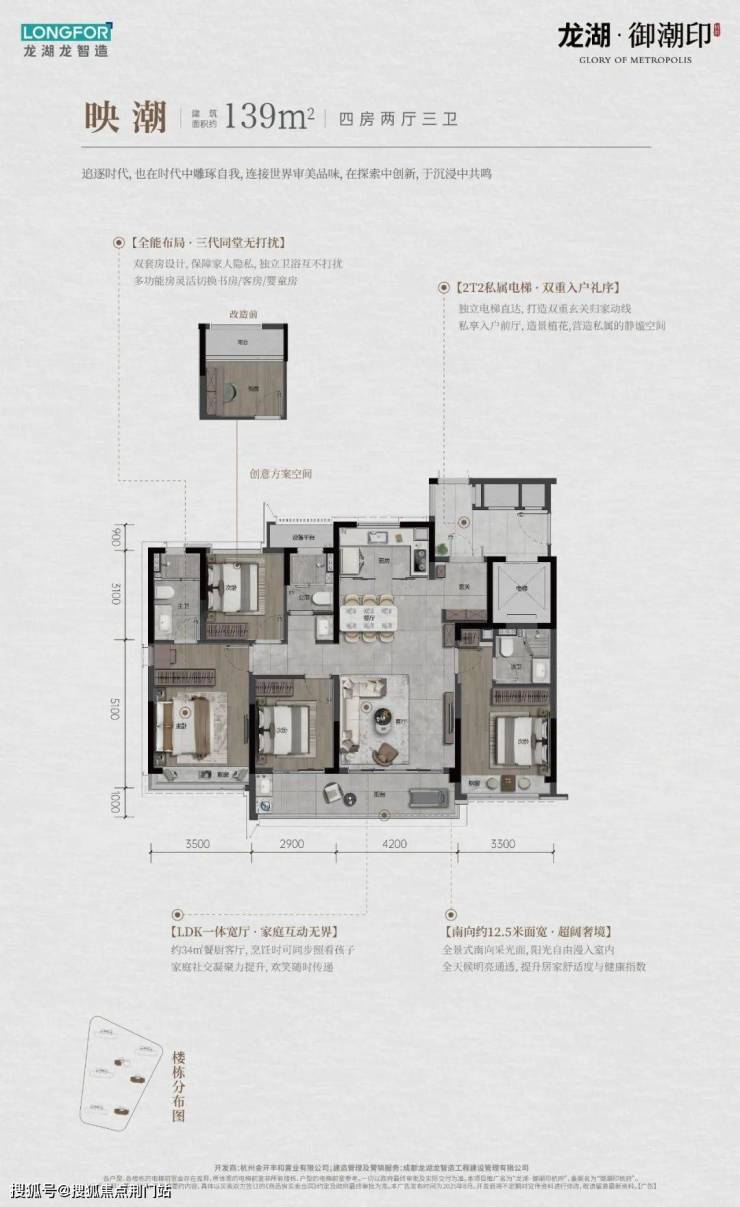 龙湖御潮印占地约2.5万方,打造纯粹的7幢高层,错落排布出约494户住宅社区。