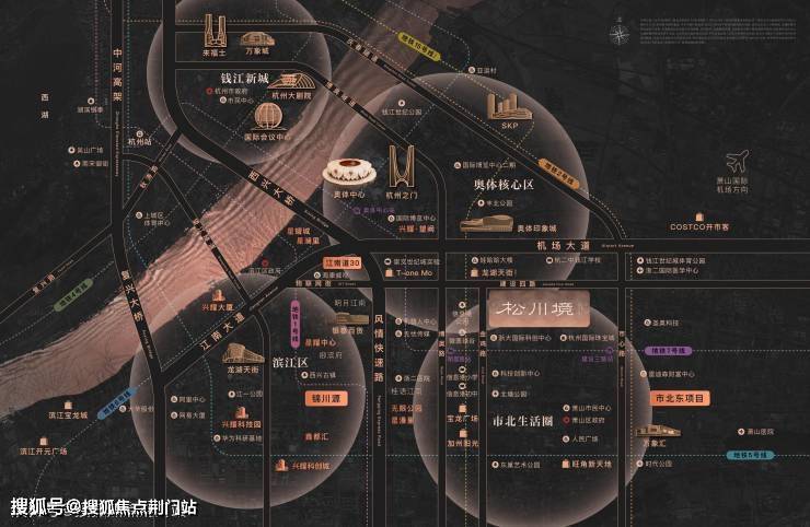 杭州滨江兴耀·松川境府坐落于奥体南·市北西板块,地处建设四路与金鸡路交汇处东侧,占据杭州“拥江发展”战略下的黄金十字轴。