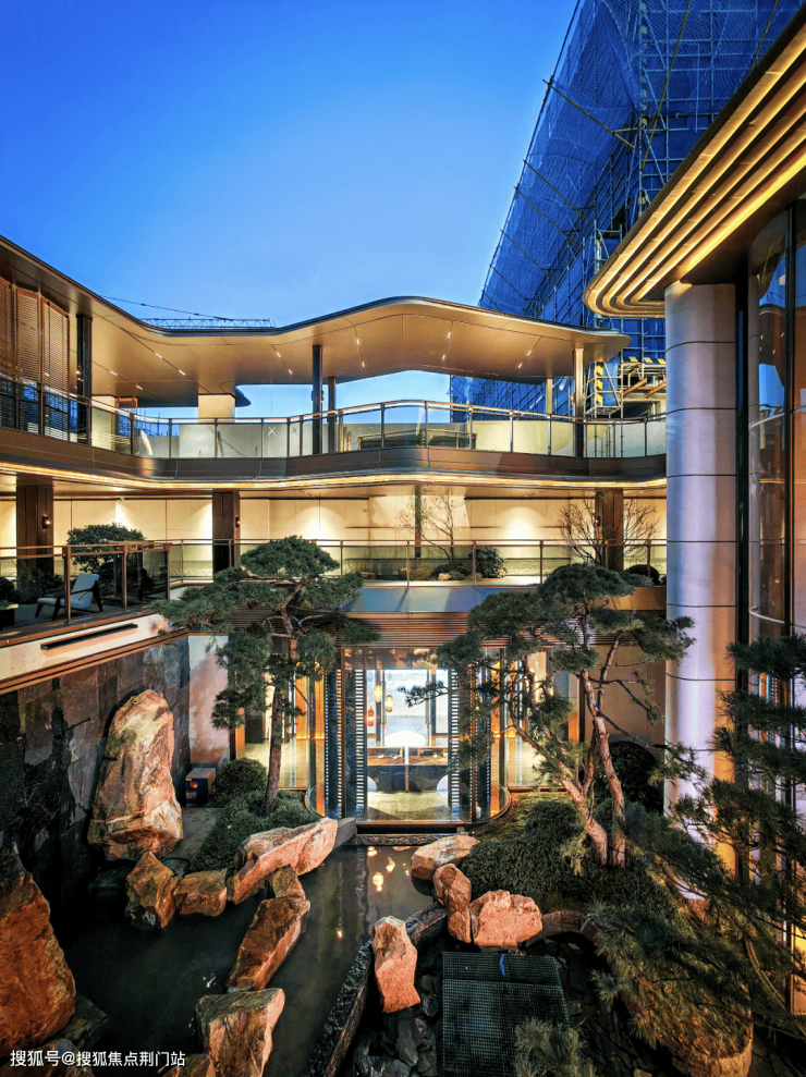 将故宫博物院收藏的《四季山水图》避风䈋装饰构件提炼出来,镶嵌在立面上,完美展示古典张力和现代艺术气质。