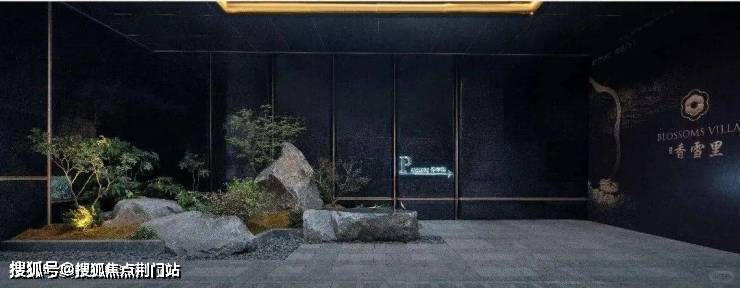 而对景墙则以亚马逊绿奢石打造,中央巧妙镶嵌金石,刻画出项目Logo,并镌刻“香雪里”之名,以及超山特有的六瓣梅花图腾,形成一道视觉上令人赞叹的风景线。