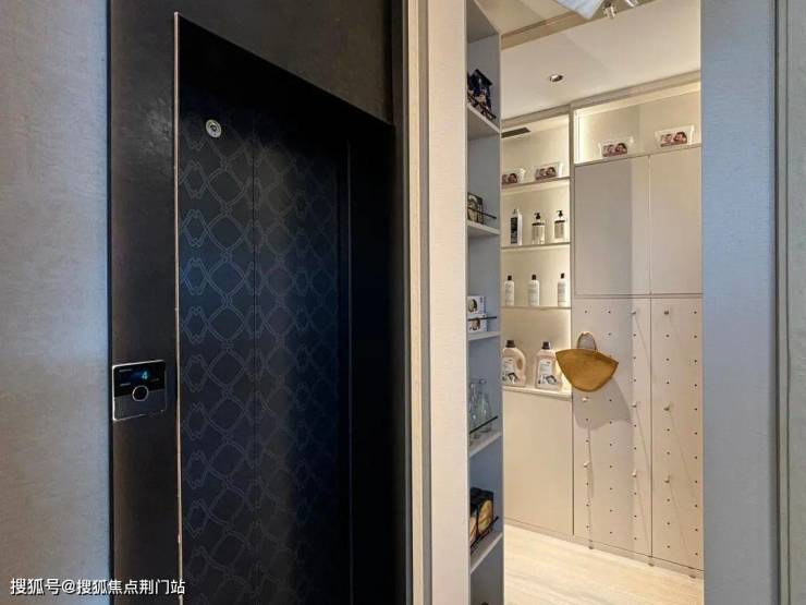 还有一个阳台更隐蔽,在入户电梯厅,绿城把它做成了一个类似八百库的储藏间。