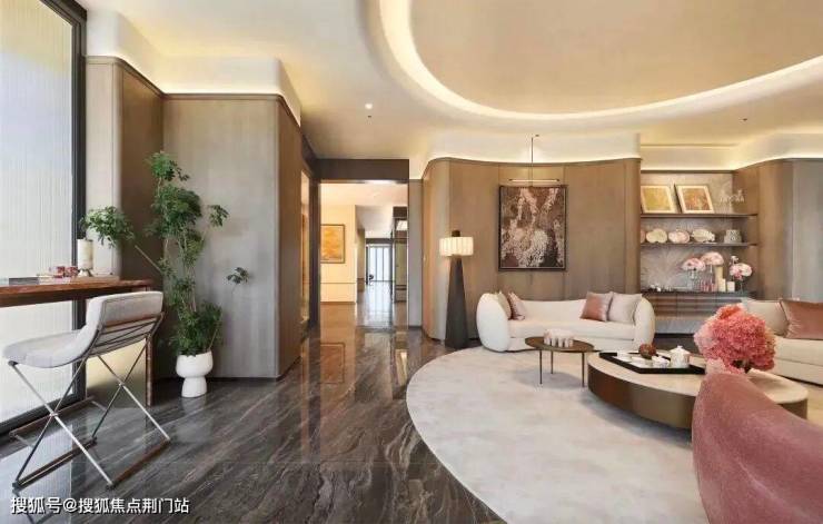 比如,开场就有重头戏!约60米的超级门庭,对称式主入口,叠加白色+金色的主调,搭配石材等豪华装标,传达出来的视觉气场就是高级。
