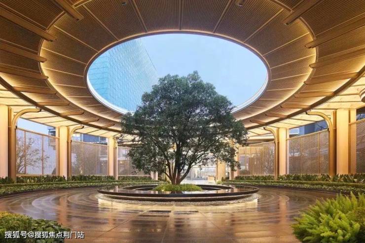 穿门而入,巨大的圆形藻井天幕,令人叹为观止。中庭一株近百年桂花+环形门庭组成了向内的“聚宝盆”,归家的仪式感直接拉满。