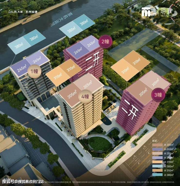 2#、3#,共2幢50套房源,标准层建面约205-245方,顶跃建面约310方、约380方,均价约7.869万/平。