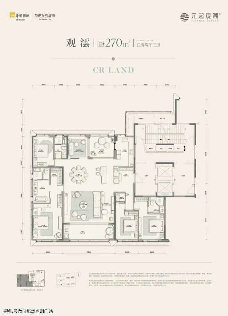 建面约270㎡户型有边厅和南厅两款: