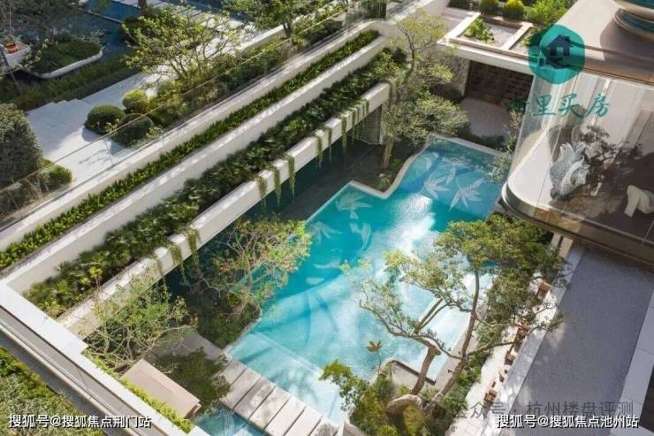 丰富的公区配置:下沉庭院、室内恒温泳池与嬉水池(两者通过可开合玻璃立面产生互动)、中轴水景花园会所、空中观景健身盒子;女王空间、棋牌室、儿童玩乐区一应俱全。