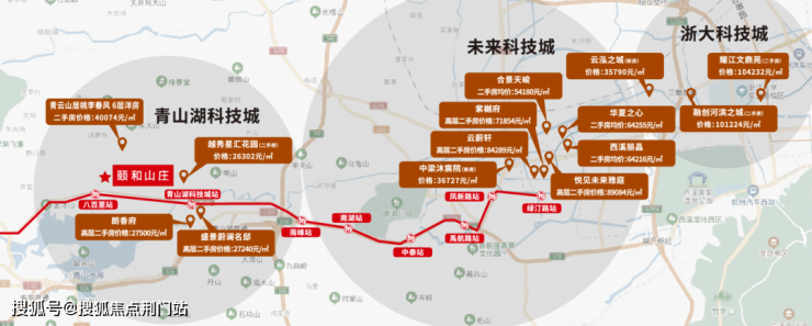 以新房为例,青山湖科技城楼盘均价约2万5,未科3万6。16号线沿线,六七站地铁相差1万+,相当于多坐一站地铁,差价近两千。