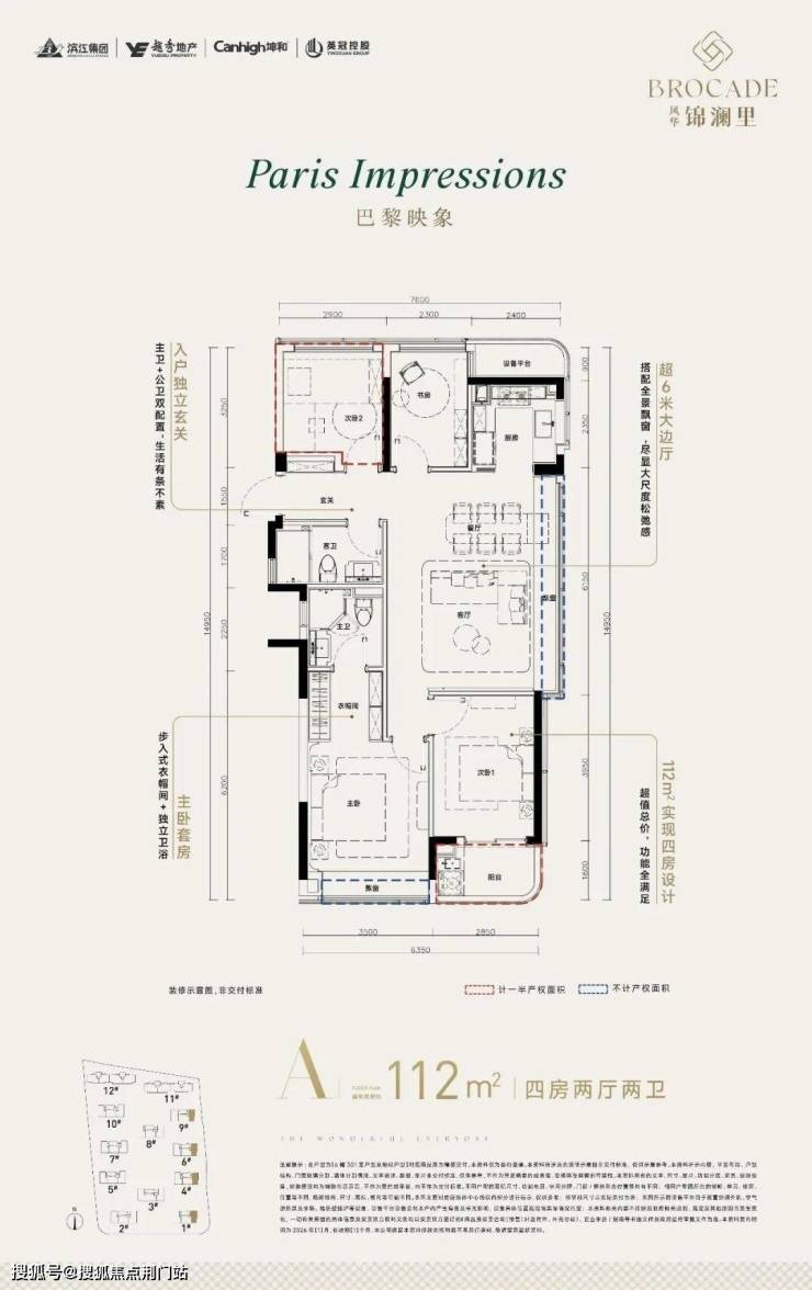 一起来看,首开起步约112方户型: