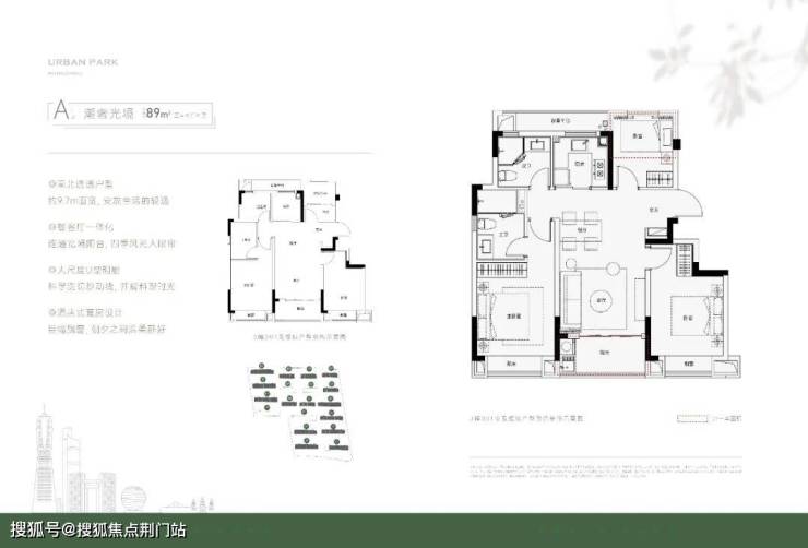 杭颂星澜府在户型的设计上更加游刃有余,主力的89方户型设计成了类四叶草的布局:动线合理、减少走廊的浪费、各卧室独立且私密。同时三开间朝南的设计,面宽达到了9.7米,主次卧均带有飘窗,采光充足,而且主卧为套房的布置,让生活更舒适。