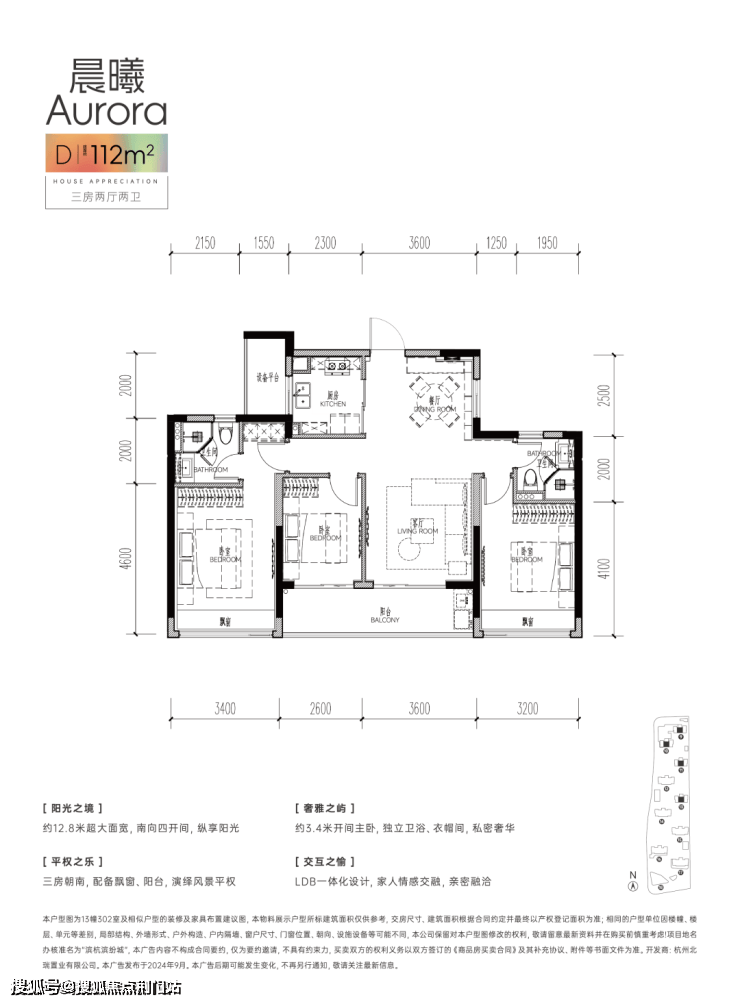 建面约112㎡的两款四房,竟然还有一款是四开间朝南,且有两间是套房,总面宽达到了逆天的约12.8米!客厅和次卧共享双联阳台,晾晒和会客也互不干扰。