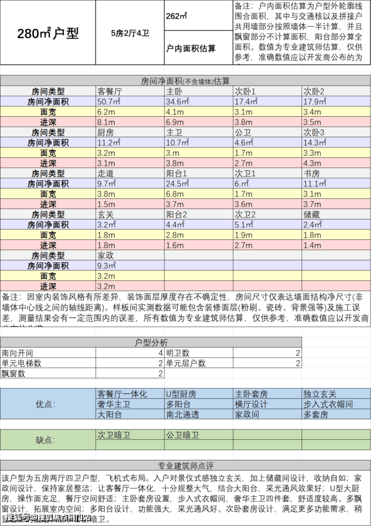 四、建面约280方五房两厅四卫: