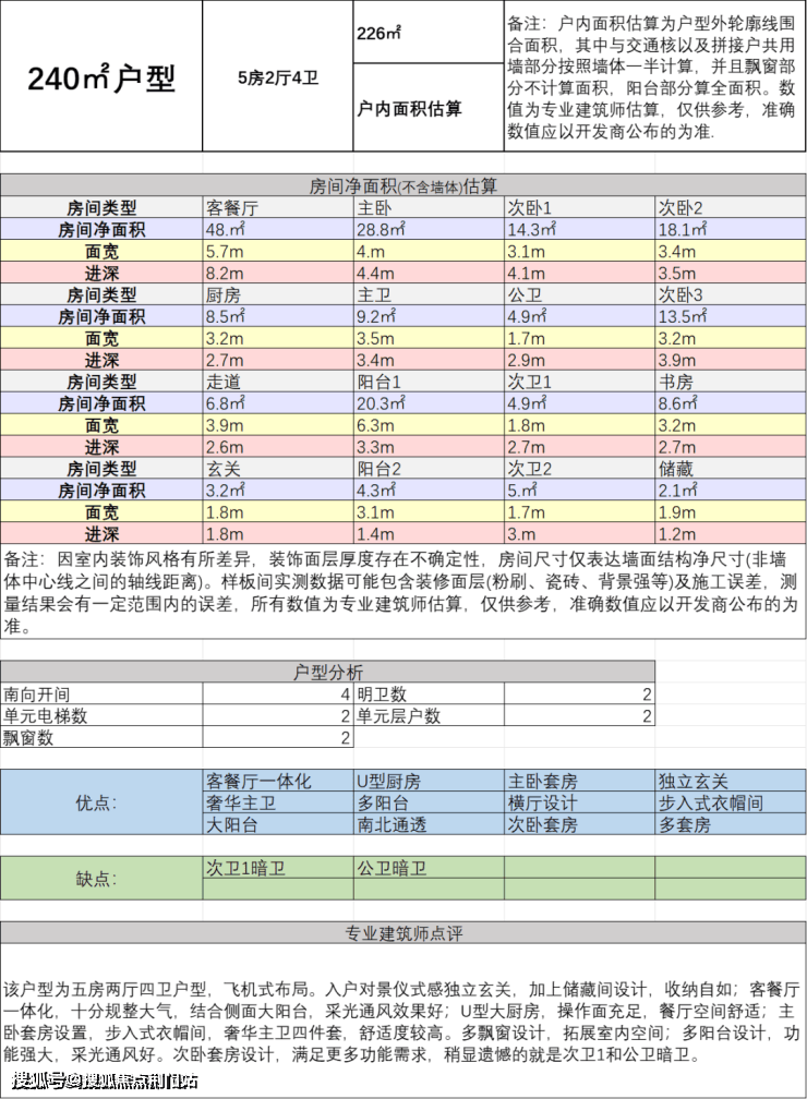 二、建面约240方五房两厅四卫: