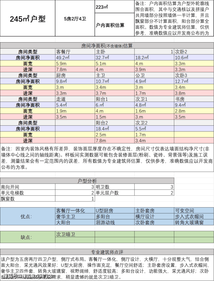 三、建面约245方五房两厅四卫: